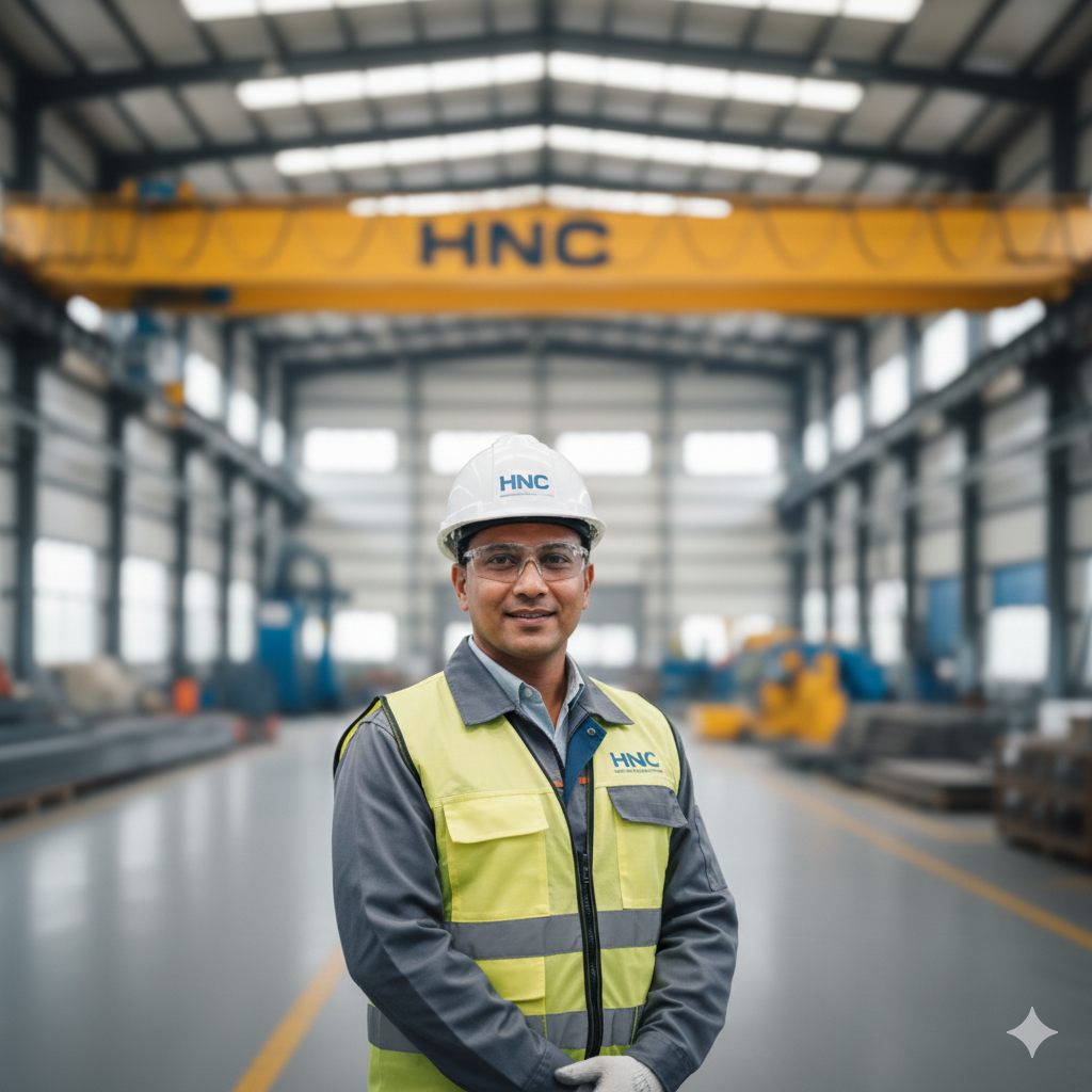 HNC Industries is India’s pioneering manufacturer of steel products and a trusted name in material handling solutions. With over 30 years of consultancy expertise and more than a decade of proven excellence in crane manufacturing, we specialize in Gantry Cranes, Electric Overhead Cranes, Semi-Goliath Cranes, Electric Wire Rope Hoist Cranes, and JIB Cranes. Guided by the vision of our Managing Director, Mr. Lovepreet Singh, we deliver innovation, quality, and value through comprehensive, end-to-end solutions — from design and manufacturing to erection, installation, service, and commissioning. Backed by an expert design team and advanced manufacturing and testing infrastructure, we ensure timely deliveries without compromising on quality, cost, or reliability.